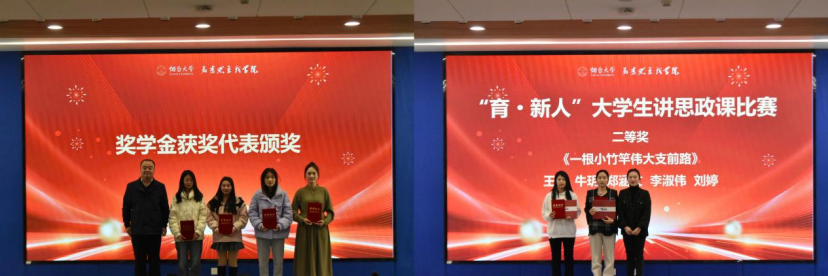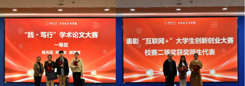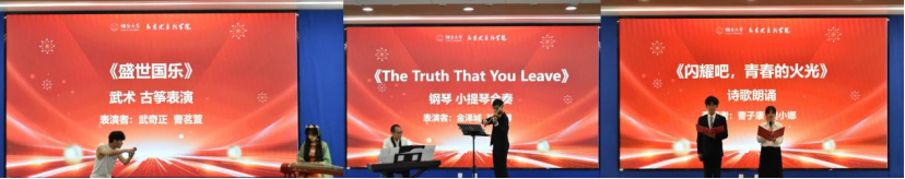 闭幕式上,视频回顾了学术文化节系列活动开展情况。到场嘉宾为宿舍文化建设月、大学生讲思政课、学术论文大比拼等活动中表现突出的团队和个人颁发了证书和奖品。此外,还表彰了在“互联网+”大学生创新创业大赛校赛中获奖的团队以及2023年研究生奖学金、优秀研究生、优秀研究生干部等获奖同学。由研究生和预科班学生自主筹备、编排的钢琴小提琴合奏、武术古筝表演给与会师生带来了一场视听盛宴,最后本届学术文化节在诗朗诵《闪耀吧、青春的火光》中圆满落下帷幕。