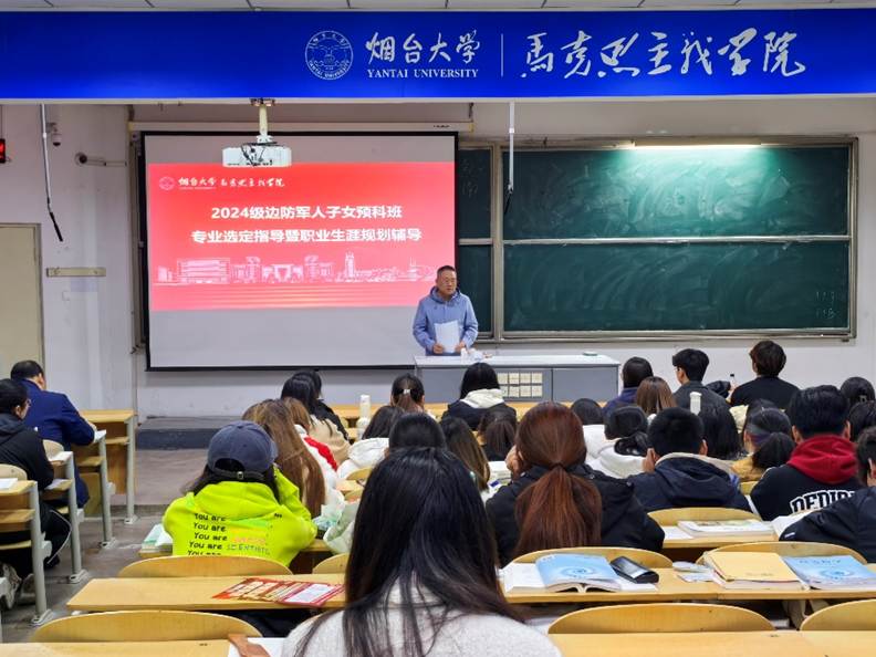 举办预科班学生专业选定指导暨生涯规划指导会。活动邀请学校学生工作处副处长张强、生命科学学院党总支副书记王东担任主讲嘉宾,学院党总支书记李祎、副书记陈雷、辅导员张琳和2024级边防军人子女预科班全体学生参加活动。
