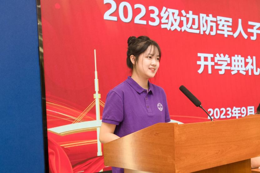 宣誓环节,新生代表郭佳凝带领全体新生庄严宣誓。铿锵有力的誓言,展现出2023级边防军人子女预科班同学的神采风貌。