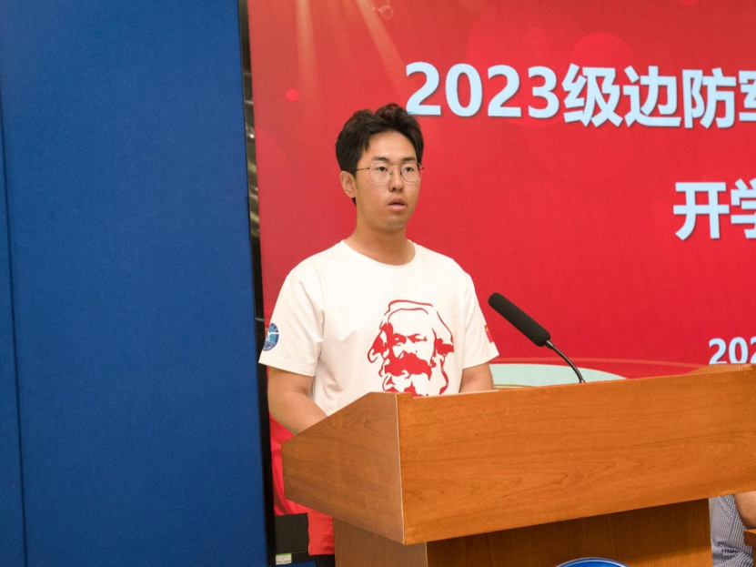 2022级预科班学生代表刘坤向新生分享大学生活的经验与体会,并鼓励学弟学妹葆本色、勇担当肯吃苦、善学习懂感恩、知奋进展示出部队子弟们的风采,不负于父母老师的付出和国家的优待,为中华民族伟大复兴努力奋斗。