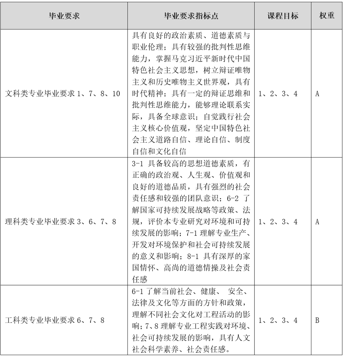 课程目标4:通过本课程的学习,使学生能了解在中国进行社会主义革命和建设的历史决定性及探索中主要成就、探索过程的艰辛曲折,坚定走中国特色社会主义道路的信念和信心;学会观察、分析和解决问题的科学方法,不断培养和提升辨证思维能力。