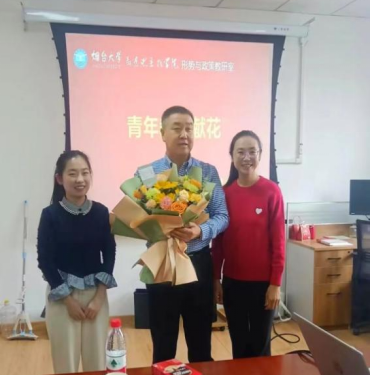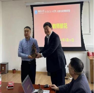 会上,青年教师们向孟庆义教授献上鲜花,刘宗老师代表教研室献上荣休纪念品。