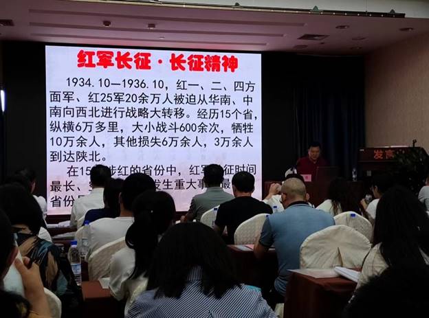 开班仪式结束后,著名长征史研究专家、贵州红军文化及红色旅游研究所所长、贵州省电影家协会主席李俊作了题为《红军长征在贵州》的专题报告。李俊以红军长征中的重大历史事件为主线,深入浅出地讲解了长征的历史背景、历程和意义,重点讲述了红军在贵州的历史细节、曲折经历和伟大转折,使参训教师在了解史实的同时,对长征和长征精神有了更加全面的认识。