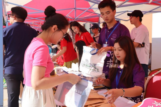 研究生新生报到现场,详细了解新生入学报到流程、迎新工作安排以及报到情况,慰问迎新工作人员和学生志愿者,并与新同学亲切交流。