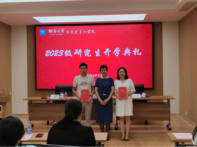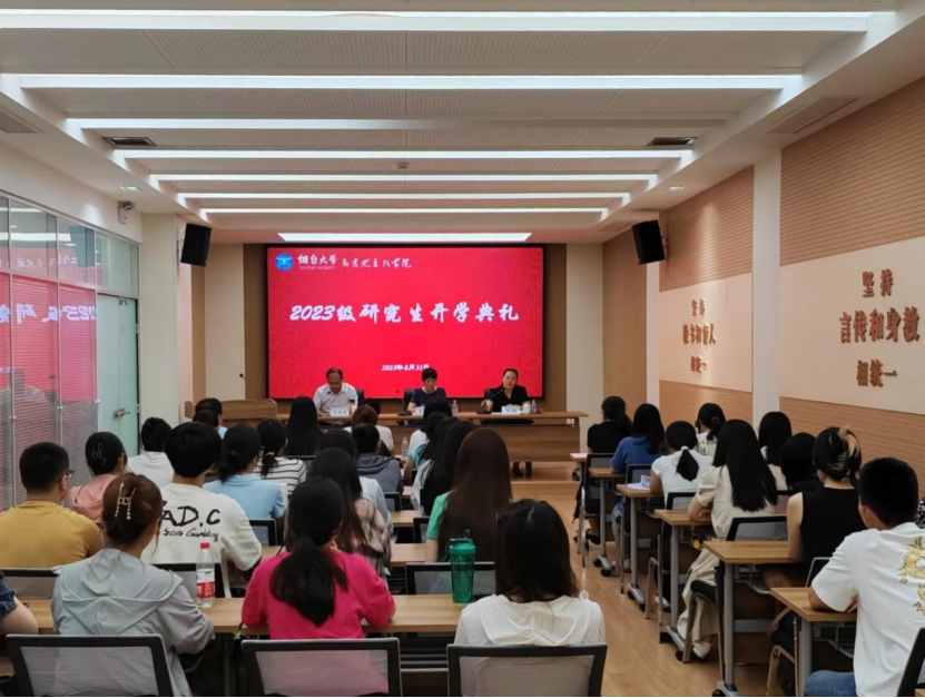 在校生代表2021级研究生杨佳丽向新生分享研究生生活的经验与体会,并鼓励师弟师妹立鸿鹄志、求真学问、行长远路,做有理想的奋进者、有本领的接班人、知行合一的实干家。2023级研究生新生代表孙钰倡议同学们谨记“守信求实好学力行”的校训,传承“海纳百川 敢为人先”的烟大精神;努力成为知识的发现者、真理的探索者、理想的奋斗者,不断思考不断质疑不断超越,成为一名合格的研究生。