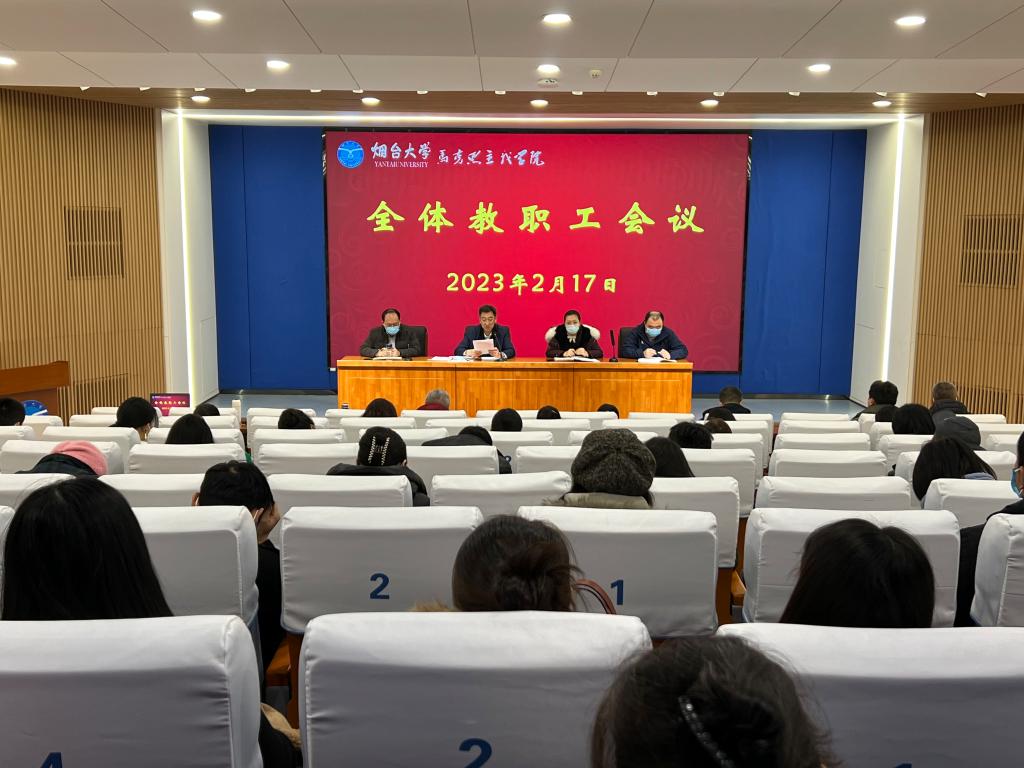 党总支书记王京强传达了学校2023年工作研讨会的主题、特点和成果,带领大家学习了党委书记张殿臣所作《勇担重任走在前 锐意进取开新局 奋力谱写新时代高水平大学建设新篇章》的讲话和校长段培永对当前学校发展面临的形势、存在的不足及主要任务的分析判断。会议详细解读了2023年学校的重点工作以及把握大势、抢抓机遇促学校事业发展等主要任务。会议要求,学院上下要以主人翁态度和饱满的精神状态,投身到学校事业高质量发展进程中去,切实把思想和行动统一到校党委的决策部署上来。要紧紧围绕立德树人这个根本任务,紧密结合学院实际,创造性地推进思政课改革创新、教师队伍建设、学科建设和党的建设等各项工作,团结拼搏,勇毅前行,凝心聚力,为推动学院实现高质量发展,为学校高水平大学目标建设贡献力量!