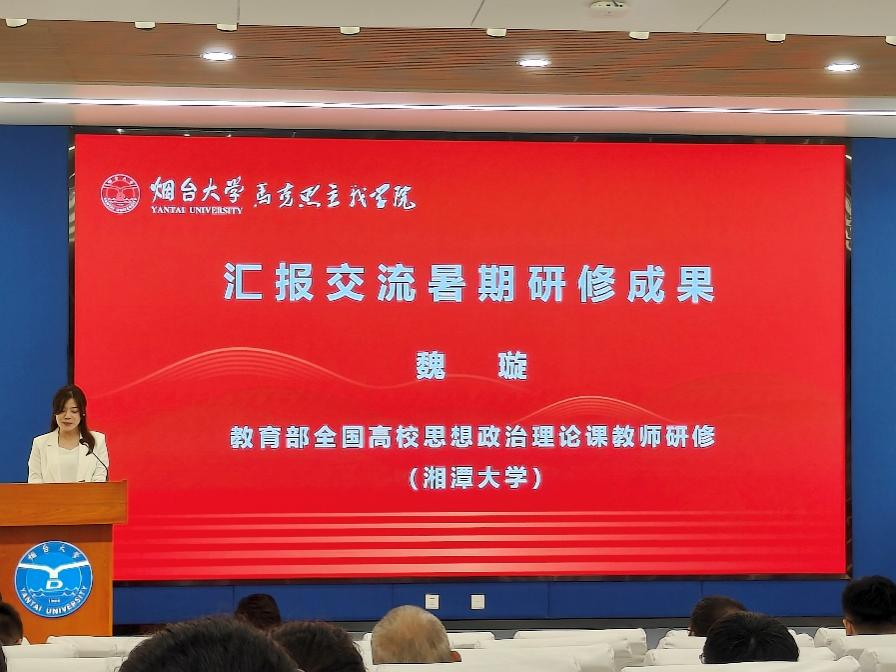 会上,学院参加教育部全国高校思想政治理论课教师研修班的教师代表汇报、分享了研修心得。其中,在湘潭大学研修基地研修的魏璇老师提到,思政课的生命力来源于真实体验与情感共鸣,今后会将研修中的感悟与思考融入课堂教学,用党的创新理论铸魂育人。