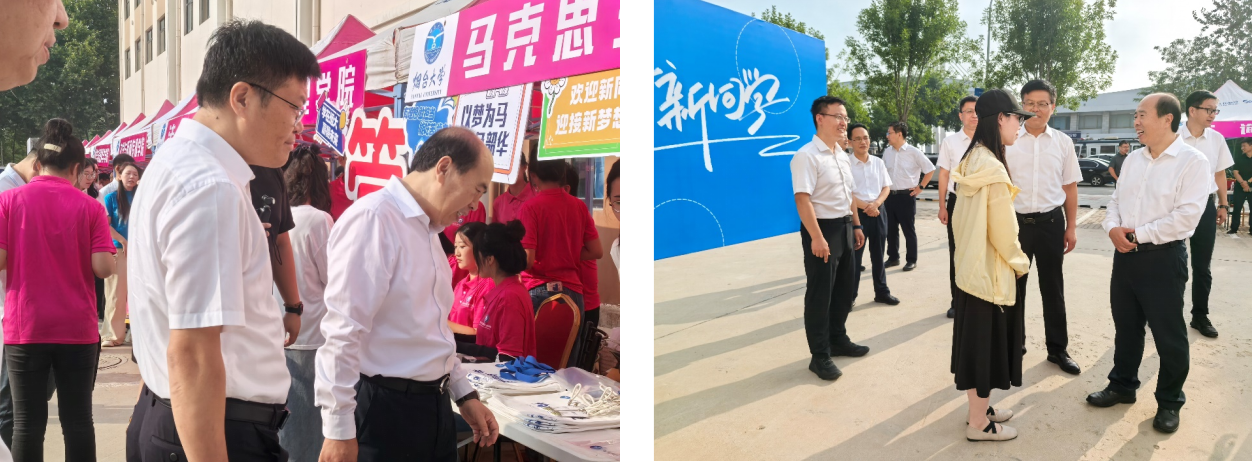 学校党委书记卢国强、校长郝曙光及相关部门负责人亲临学院新生报到现场,慰问坚守岗位的迎新工作人员与学生志愿者,并与新生亲切交流,鼓励大家珍惜研究生时光,努力实现学术成长与个人发展的双重突破。