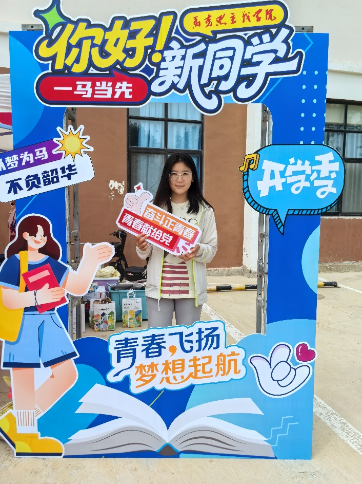 此外,学院还精心设计了彰显马克思主义理论特色的纪念手卡,在迎新展台前设置马理论特色打卡墙为每位新生定格入学首张珍贵合影。