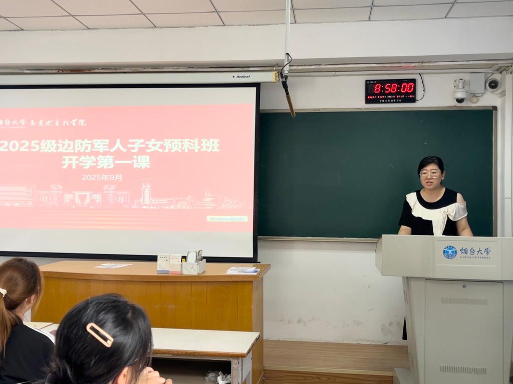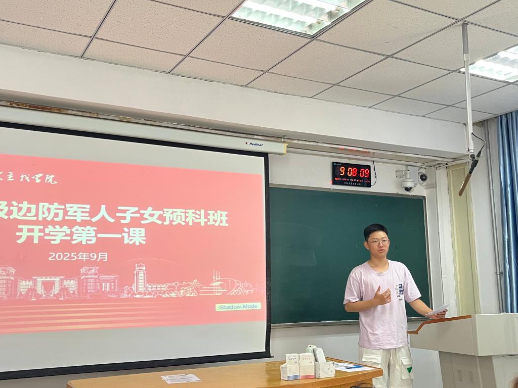 在第一教学楼200教室举行2025级边防军人子女预科班开学第一课。学院党总支副书记陈雷出席活动并开讲第一课。活动由辅导员张琳老师主持。